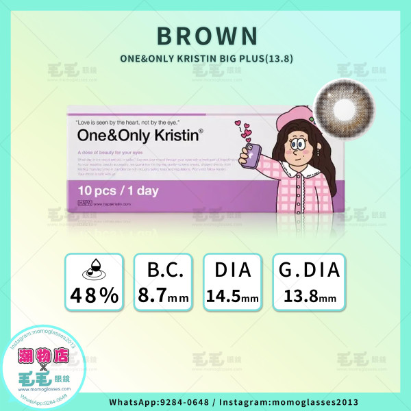 New Hapa Kristin 1Day — One&Only Kristin Big Plus(13.8) Brown 日抛 10片裝