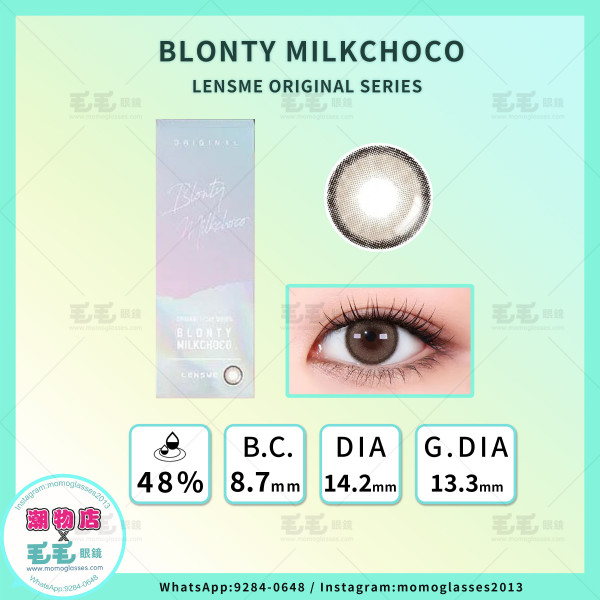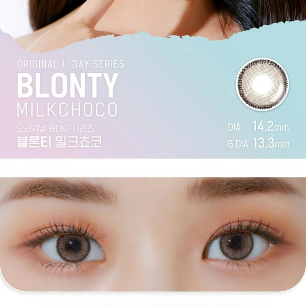 Lensme Original 1 Day Series Blonty Milkchoco將溫暖的巧克力棕與冷調的灰色相結合色作為主色調, 灰色的霧感細節融入巧克力色中,讓眼神更顯深邃且有層次感,打造出一種獨特的冷暖對比效果。